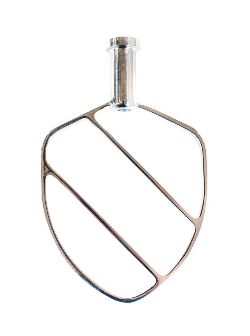Специальная конструкция делает зазор между лопаткой и дежой минимальным, в результате лопатка тщательно промешивает массу, не оставляя остатки на стенках и дне дежи. Предназначена для замешивания «мягких» видов теста: бисквитного, блинного, заварного, песочного. Также можно применять для перемешивания марципановых масс.