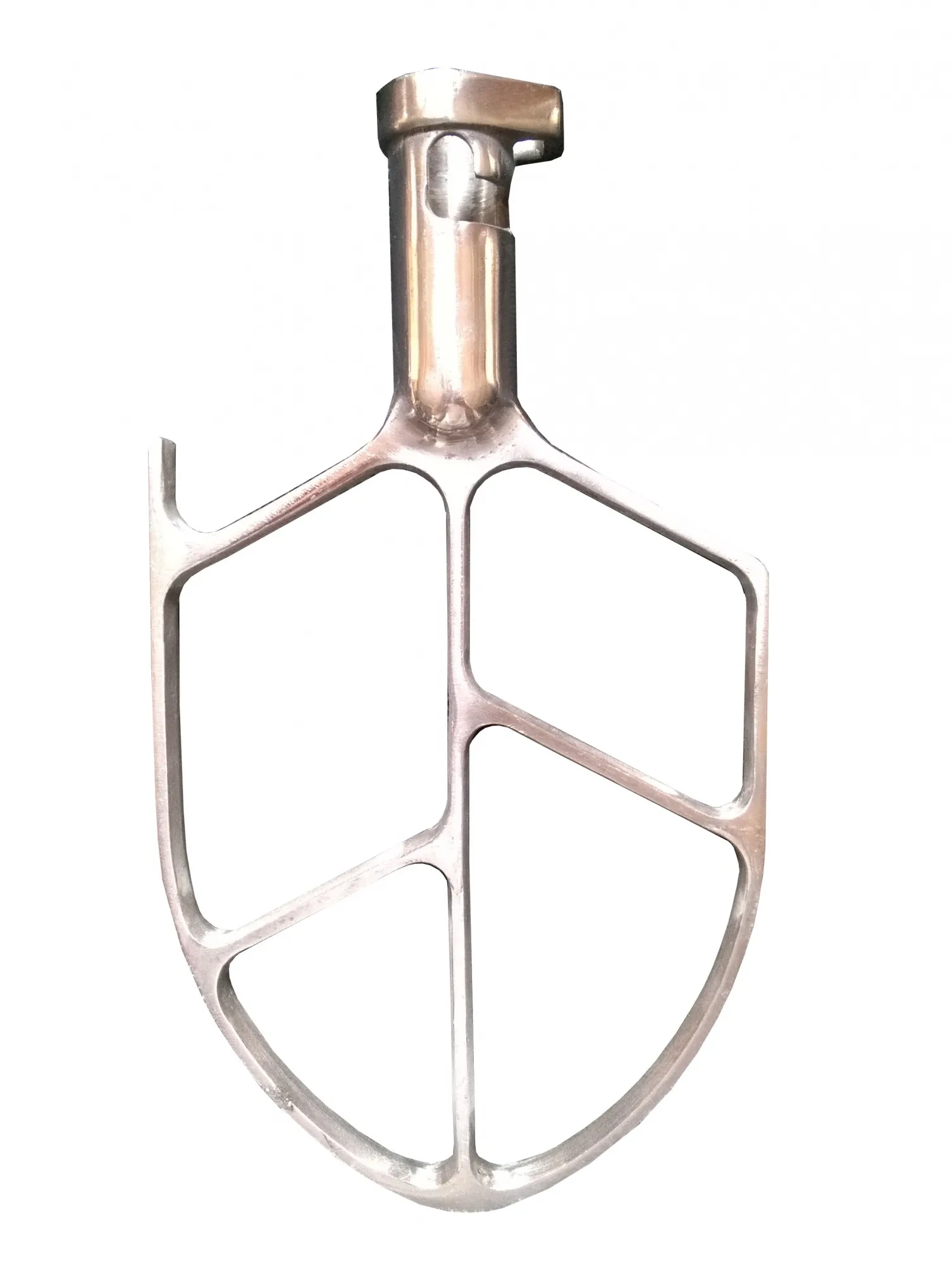 Специальная конструкция делает зазор между лопаткой и дежой минимальным, в результате лопатка тщательно промешивает массу, не оставляя остатки на стенках и дне дежи. Предназначена для замешивания «мягких» видов теста: бисквитного, блинного, заварного, песочного. Также можно применять для перемешивания марципановых масс.