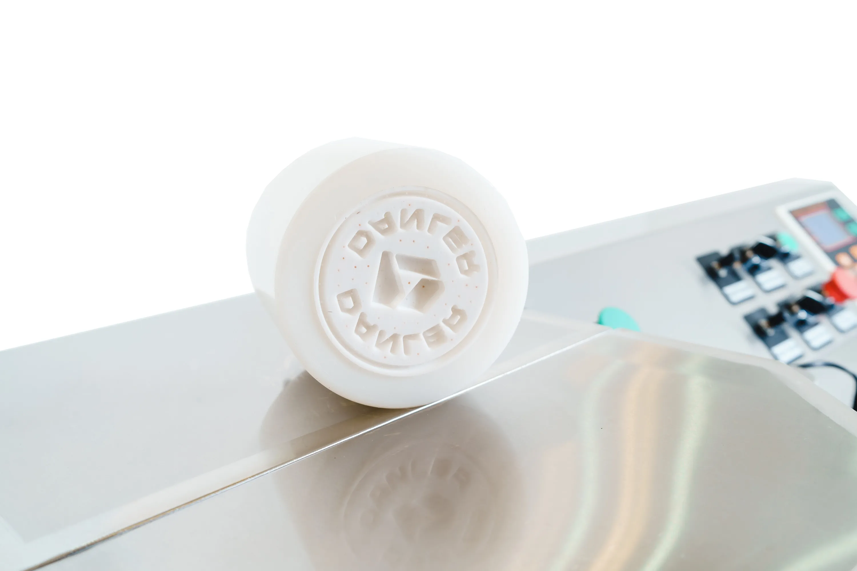 Штамповочно-формовочная машина посредством штамповки наносит внешний рельефный декор (рисунок, надпись и т.д.) и придает заготовке нужную форму (круглую, прямоугольную, в форме сердечка и т.д.).